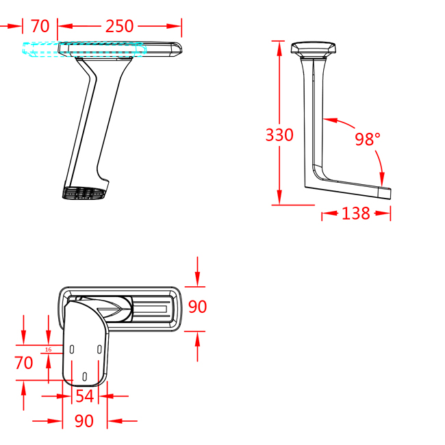 ? 材料:尼龍玻纖扶手支架 ,PU扶手面。